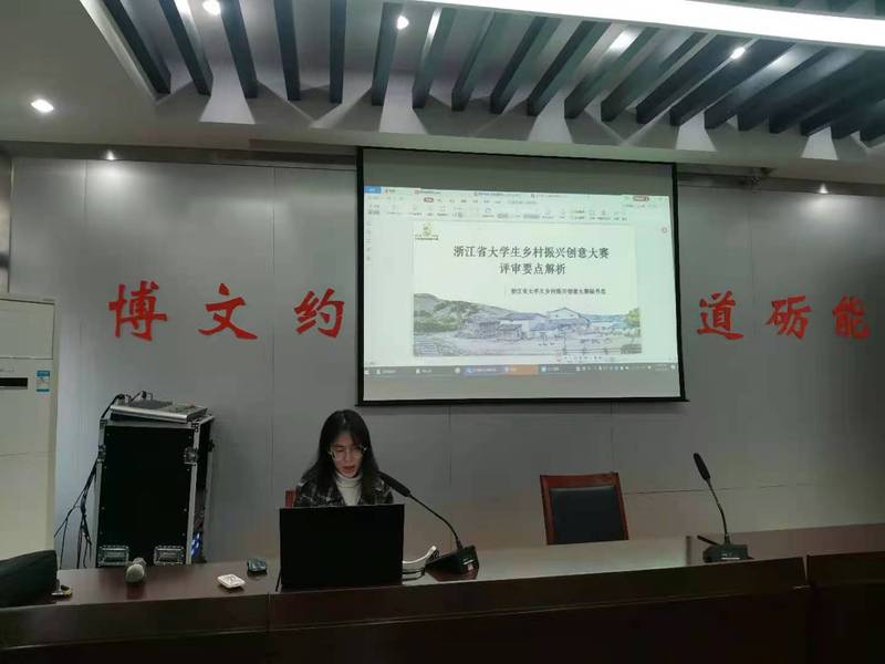 丁静老师首先发表讲话,分别介绍了大学生职业规划大赛、“互联网+”大学生创新创业大赛、“挑战杯”大学生课外学术科技作品竞赛、乡村振兴大赛的具体背景及其含金量,并积极鼓励同学们参与学科竞赛。