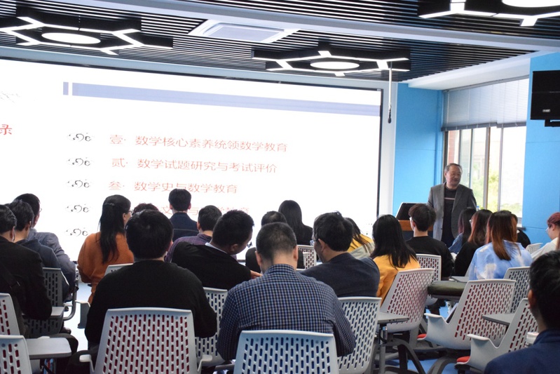 张教授结合数学教育界的最新成果、自身教学研究案例,从数学核心素养统领数学教育、数学试题研究与考试评价、数学史与数学教育、数学文化与数学教育、互联网+数学教育五个方面评价了我国数学教育研究的若干热点论题,反思目前数学教育研究存在的主要问题,回应数学核心素养落地生根的时代命题,为老师开展教育教学研究提供了思路,同学们也深受启发。