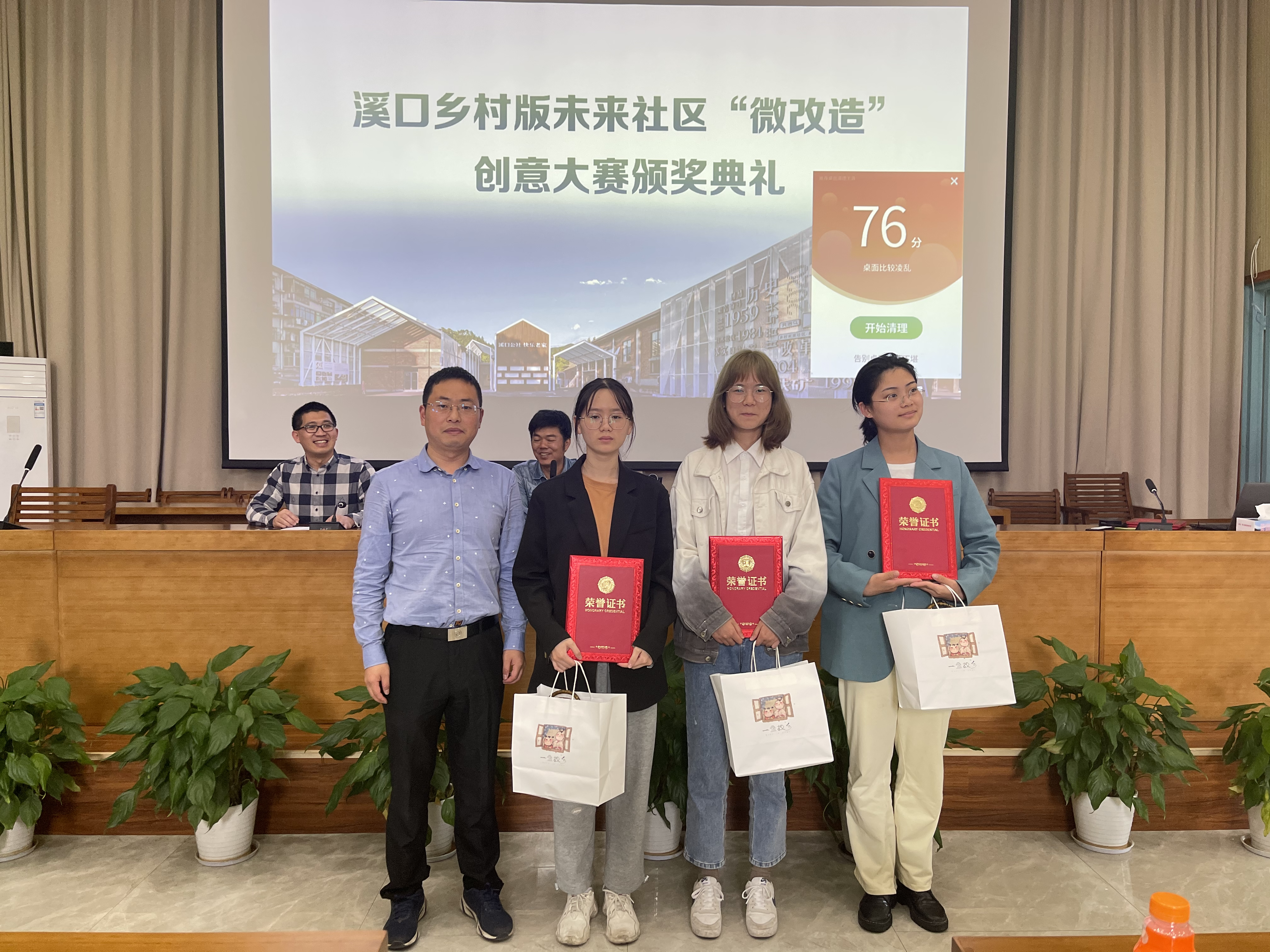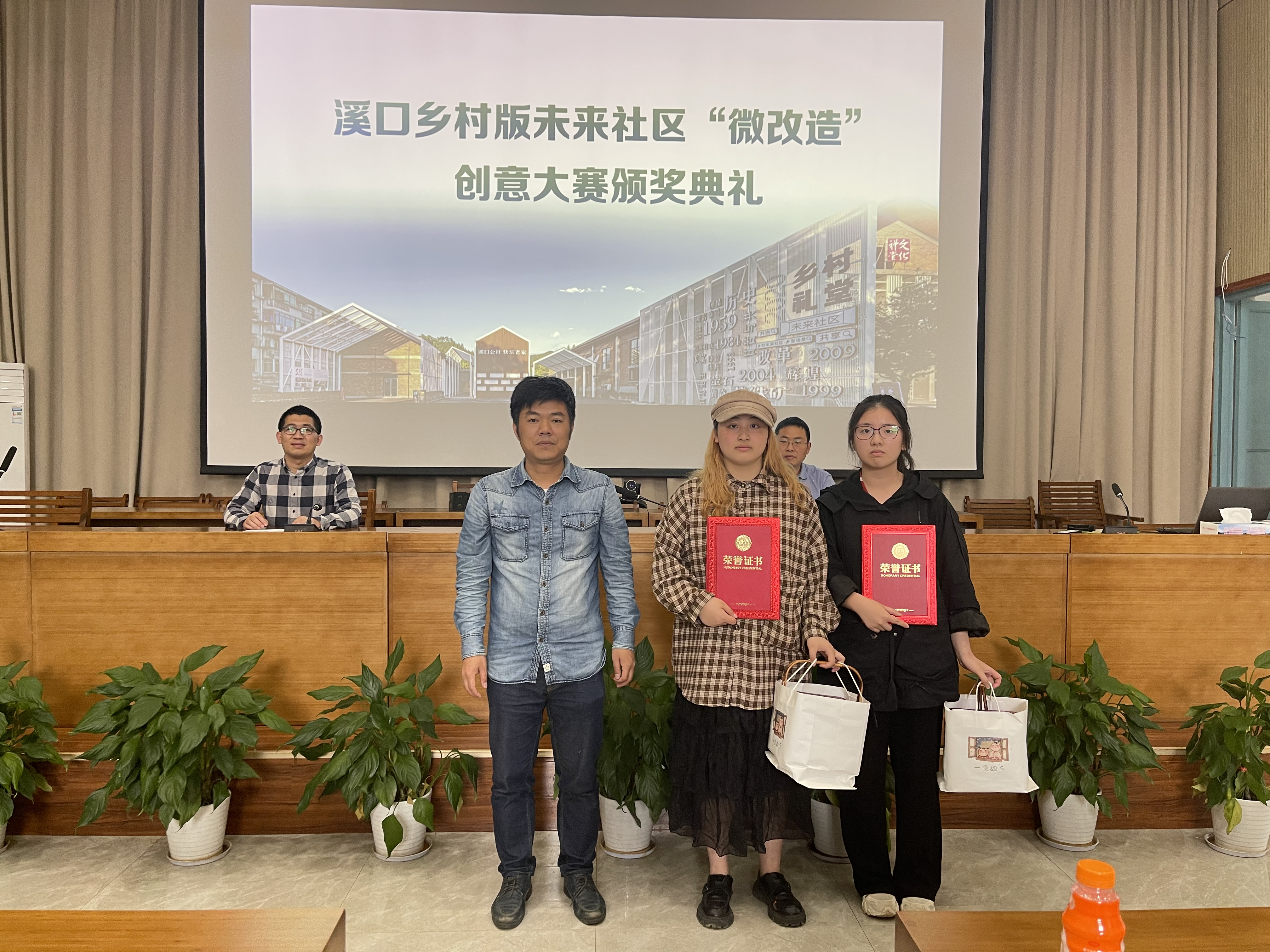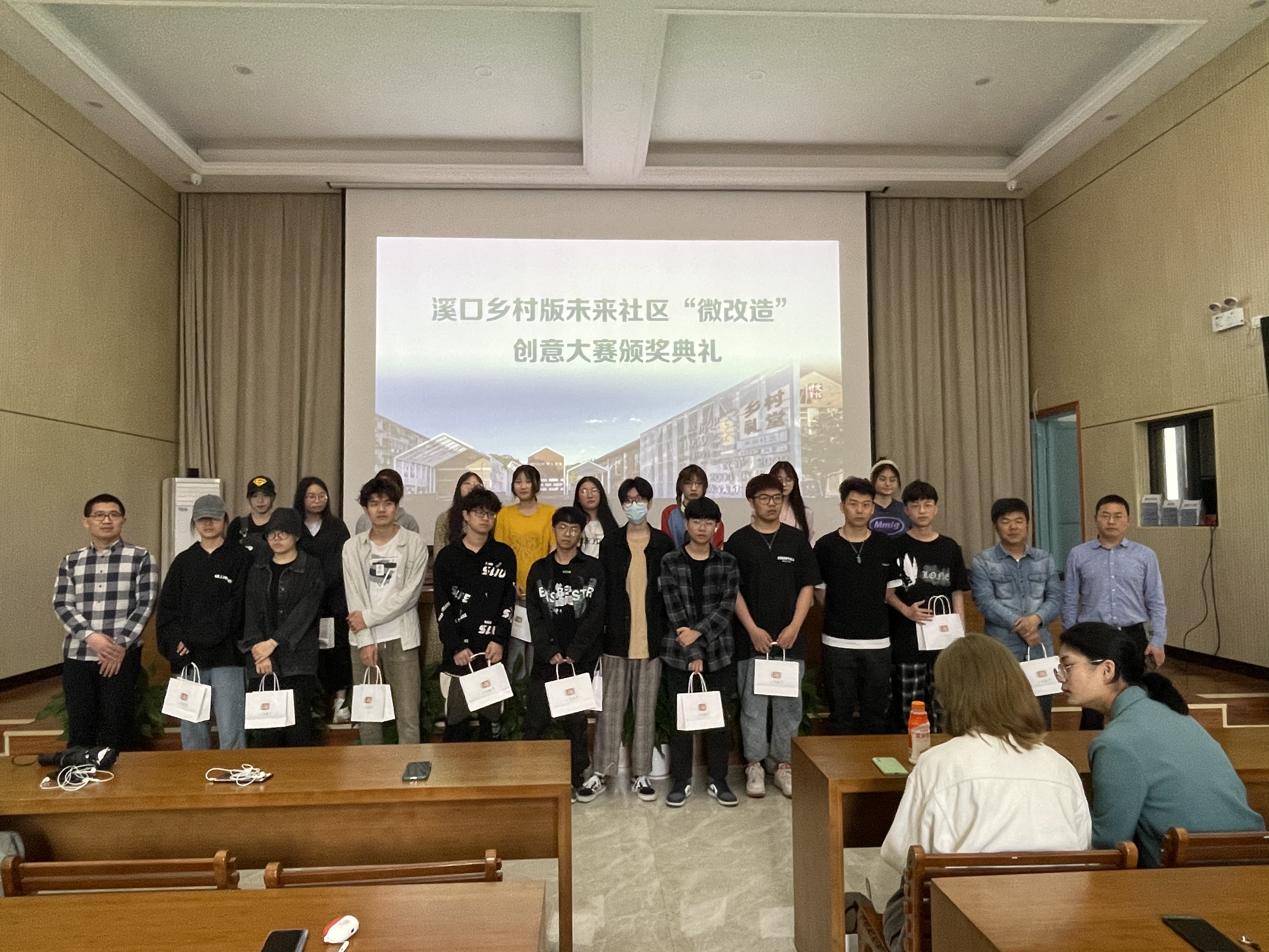 4月23日,溪口镇政府为这次微改造创意大赛举行了颁奖仪式。党委副书记沃海涛等镇政府领导代表溪口对同学们用艺术点亮社区,助力美丽乡村建设表示感谢,并与同学们合影留念。
