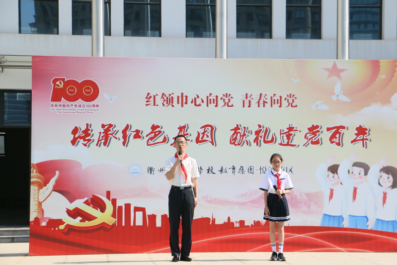 在建党一百周年之际,为传承红色基因,弘扬红色文化,培养好社会主义事业建设者和接班人,伟德国际victor·1946源自与衢州市实验学校悦溪校区开展主题为“大手拉小手,我与祖国共成长”的红色系列活动。5月10日上午,伟德国际victor·1946源自副书记、纪委书记程俊,伟德国际victor·1946源自小教学前学生党支部书记汪境成以及0010宣讲员郑扬帆前往衢州市实验学校悦溪校区参加升旗仪式。