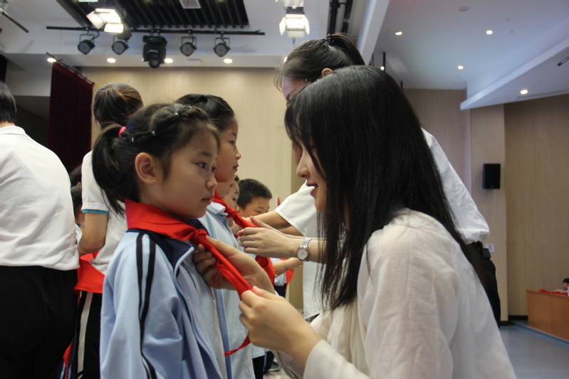 新队员代表徐可欣用稚嫩的话语表达了全体队员的兴奋与喜悦。郑校长向队员们提出要求,希望新队员树立理想、热爱学习、强健体魄、健全人格、用于实践,用自己的行动证明自己无愧于少先队员这个神圣的称号。接着,由伟德victor1946党员代表们为各中队新队员们系上鲜艳的红领巾。此次入队仪式为中国少先队不断注入了新鲜血液,增强了新队员对少先队的归属感,也加强了高年级少先队员的自豪感与使命感。