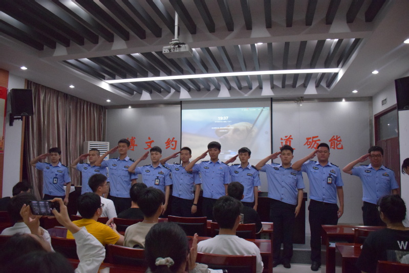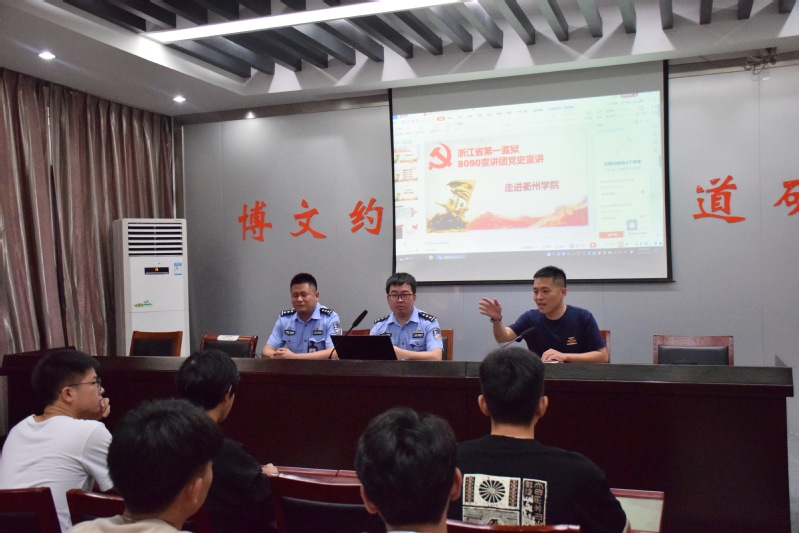 最后,胡铯警官向同学们介绍了浙江省第一监狱主要情况,并向同学们教授了简单的防身术,引起了同学们的广泛兴趣。
