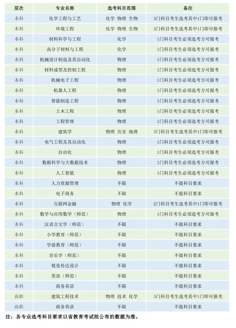 伟德victor19462021年招生专业选考科目范围(湖北省)