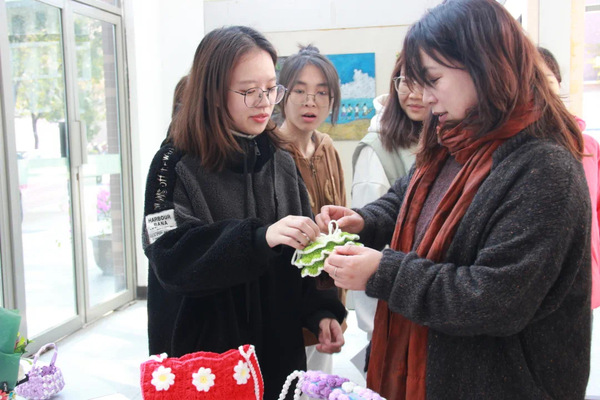 在展览中,学前教育的同学们积极地向大家介绍着各个作品的创作灵感与内涵,展示手工艺品的制作过程与制作心得,交流着对于美学的认识,分享着彼此对于学前教育专业的理解与热爱。