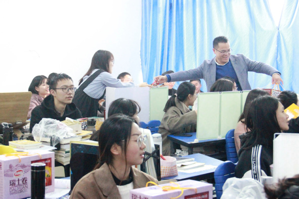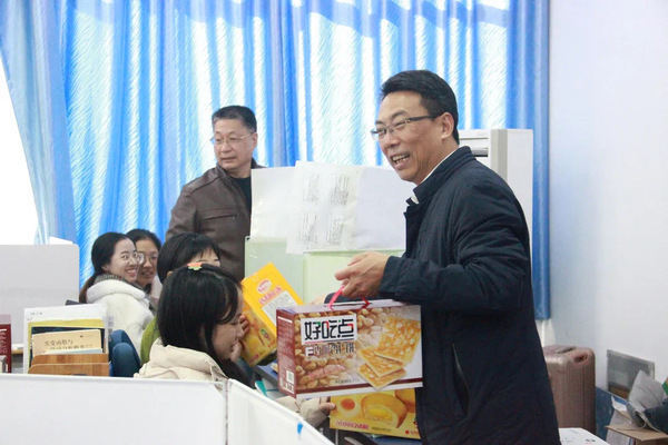 随后,各位老师给在场的每一位考研学生送上了精心准备的慰问品。一份份慰问品被老师们亲手交予同学们手中,深切传递着教院老师对考研学子们乘风破浪、披荆斩棘的殷切希望与祝福。