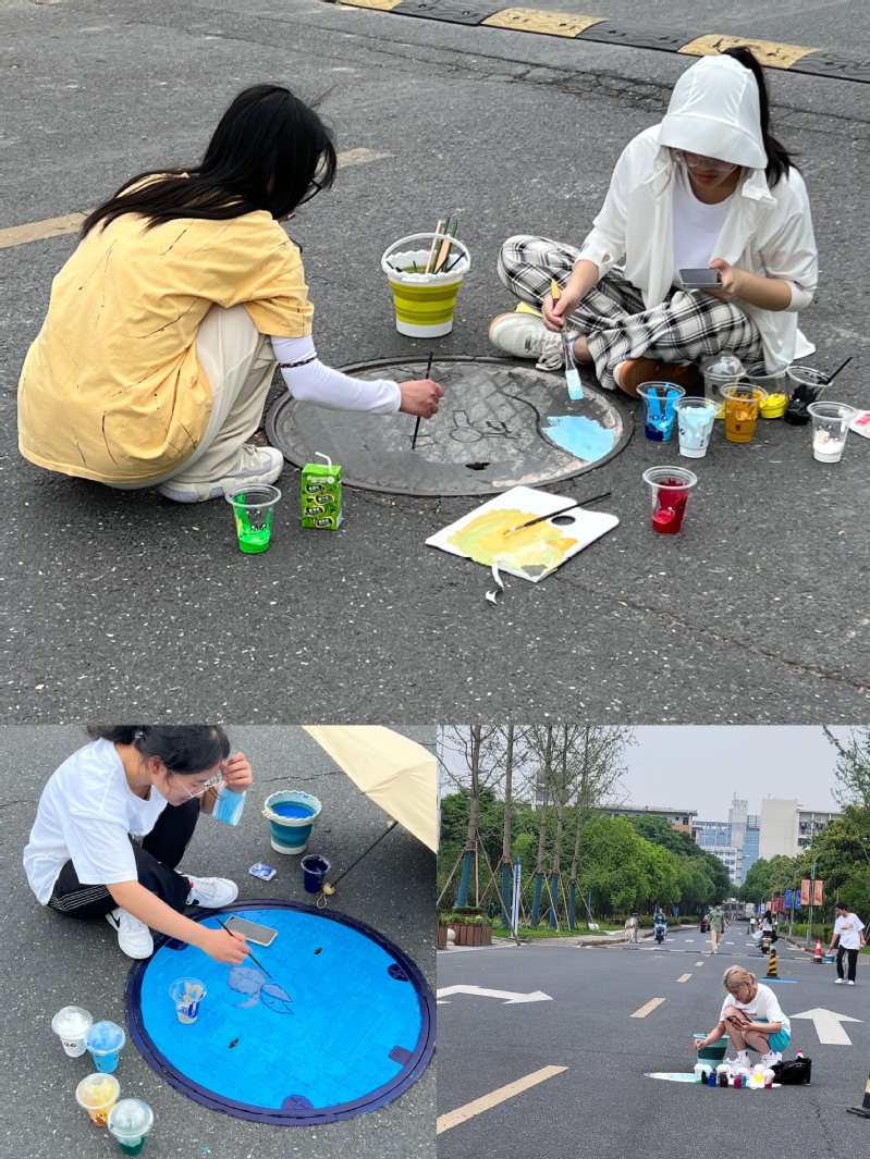 这次活动最为重要的一点,便是让同学们切身体会到实地作画与纸上作画的差异,立心力行,于做中学,实作实操。通过实践得来的知识和技能,是课本上没有的,也是文字无法言说的,唯有亲自体验,才能习得感悟。“井盖变景盖”,在21视传同学们的巧手之下,疫情下的校园有了新变化。