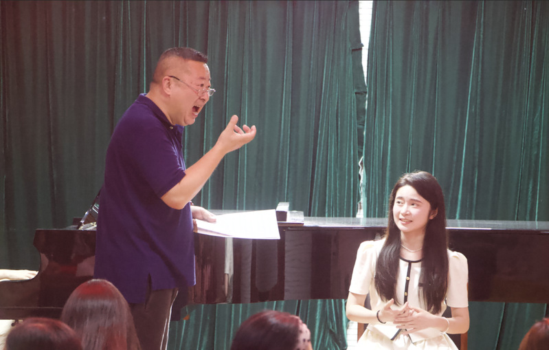 众所周知,声乐是运用艺术化的语言与科学化的发声,共同塑造鲜明生动、悦耳动听的听觉形象,为此,演唱者不仅要对歌唱理念有正确的认知,在歌唱技术、表演以及艺术理解和感知等方面也需要经过长期坚持的训练、积累以及实践。而审美共情,简而言之,就是演唱者在演唱过程中,通过深入理解音乐作品,将自己的情感与作品蕴含的旨意相融合,进而引发听众的共鸣。审美共情需要声乐技巧和方法的支持,声乐的技巧和方法又是审美共情实现的重要途径。因此,在当晚的讲座中,两位教授从同学们的实际演唱出发,在技术与控制、情感表达、个性化与艺术表现等方面逐一地为同学们进行了细致且专业的指导与分析,现场教学效果显著。由此可见,声乐演唱中审美共情的实现需要演唱者具备较为娴熟的技巧以及控制力,对音乐作品进行深入研读,掌握作品的创作背景、风格特点以及情感内涵,还需要演唱者具备敏锐的感知能力、良好的艺术修养以及表现力。