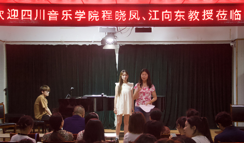 5月23日晚,四川音乐学院声乐歌剧学院程晓凤教授、江向东教授莅临我院,为师生带来题为《声乐演唱中的审美共情及声乐教学的几点体会》的专题讲座。为了帮助老师、同学们获得直观的感受与体验,讲座采用了理论+实践的模式进行,由音乐系8位同学依次上台演唱,每一位同学演唱结束后,两位教授结合多年丰富的声乐表演与教学的经验、方法和理论,进行了具体且有针对性的指导与示范。