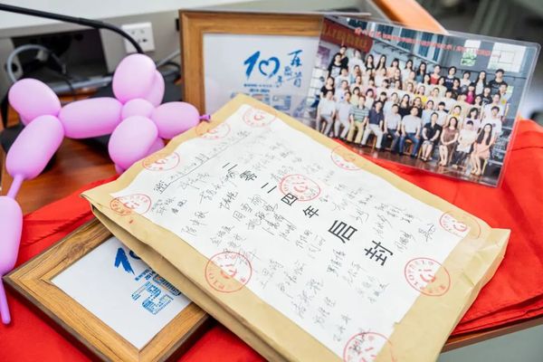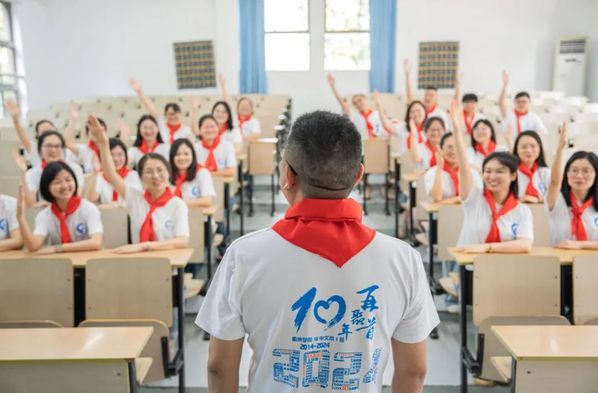 随着班主任沈茂生老师一声“10中文本1班现在开始点名”,把大家的记忆一下子拉回到了十年前。2014年毕业时,每位同学都为十年后的自己写了一封信,交由班主任沈老师封存保管。接下来,班会进入了最重要的环节,同学们启封十年前的信件。“我要做到学高为师、身正为范”“我要努力工作认真生活,做一个有情有义的人”……同学们大声朗读着信件,在曾经的文字中瞥见时光,眼中闪烁着对过往岁月的无限感慨。随后,同学们来到校园寻找青春记忆,教学楼前这片“风雅林”是他们求学期间种下的,桂花树郁郁葱葱,述说着时光的温柔,快门响起,一张张灿烂的笑脸被永恒地记录,成为了师生共同珍藏的美好回忆。