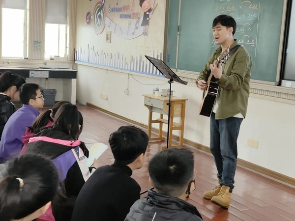三尺讲台铸梦想,教书育人有担当。在近百余场的舞台上反复磨练、成长,在不断努力学习专业的过程中,他也经常思考,音乐能给人带来什么,能够从哪些方面帮助到别人呢?在舞台上实现自己的梦想,是一束发光的火苗,而回归自己的师范专业,去点亮孩子们心中的梦想,便能是燎原之势,以小梦圆大梦。在三年的师范生教育见习和实习中,他均取得了优秀成绩。在音乐课堂上,让孩子们在“玩中学,学中玩”鼓励他们勇于去发现美、表现美和创造美,让他们能在音乐的海洋里快乐的成长,并向着美好的未来前行。这便是他这名音乐师范生的初心与使命!