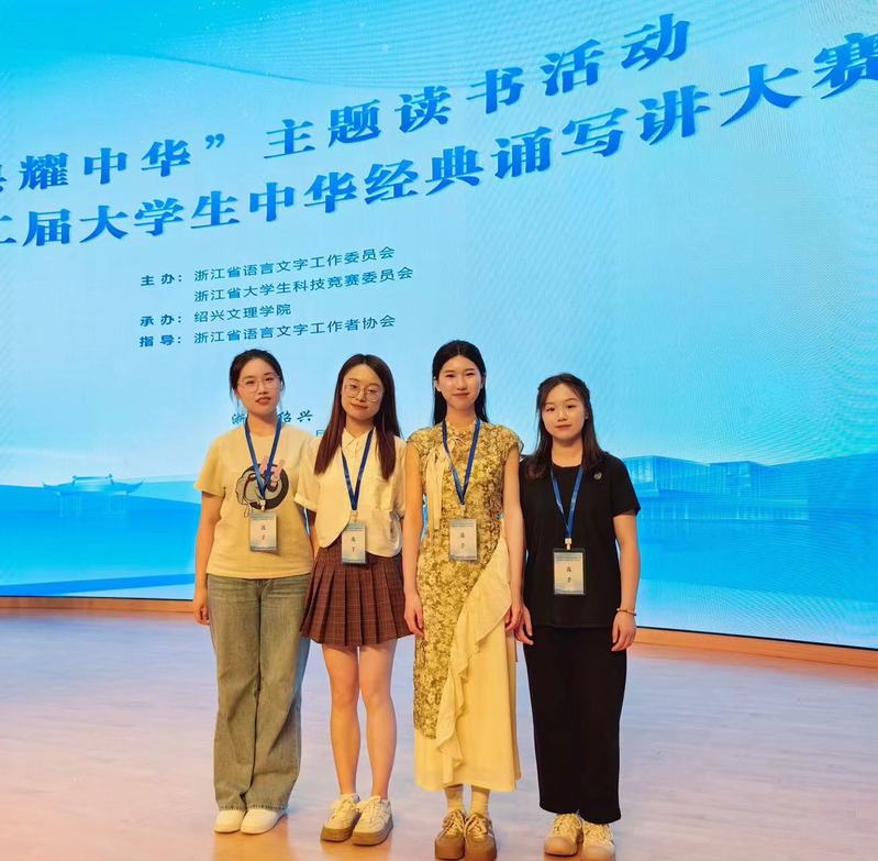 日前,“典耀中华”主题读书活动暨浙江省第十二届大学生中华经典诵写讲大赛决赛在绍兴文理学院圆满举行。大赛共分为“典润之江”经典诵读竞赛、“诗泽之江”诗词讲解竞赛、“书漫之江”汉字书写竞赛、“石沐之江”篆刻竞赛等四个赛项。经过激烈角逐,我校学子在经典诵读、诗词讲解、篆刻、汉字书写等四个赛项中取得佳绩,共获一等奖5项、二等奖9项、三等奖13项。