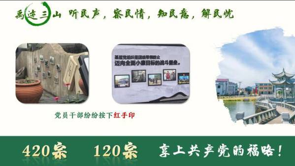 基层党组织是带领群众迈向全面小康目标的战斗堡垒。2019年,三山村打响农房整治、风貌提升攻坚战的“第一枪”。党员们纷纷带头按下“红手印”,带动全村拆除违建420宗。在农房整治之机,村里又对140宗危旧房进行了集中改造,其中就包括村民黄卸妹的老屋。曾经住着危房的86岁的老人黄卸妹,现在住进了村里出资修建的新房。她说:“当年我住的还是泥房子,院子的围墙也倒塌了,后来村里帮我翻新了房子,还帮我办了低保。”独居的黄卸妹把房前屋后收拾得干干净净,在门前院子内种上了应季的鲜花,把自家庭院打造成了小花园。“现在,村里的幸福食堂提供免费午餐,村干部像家人一样关心我,我享共产党的福喽。”老人笑呵呵地说。