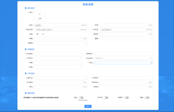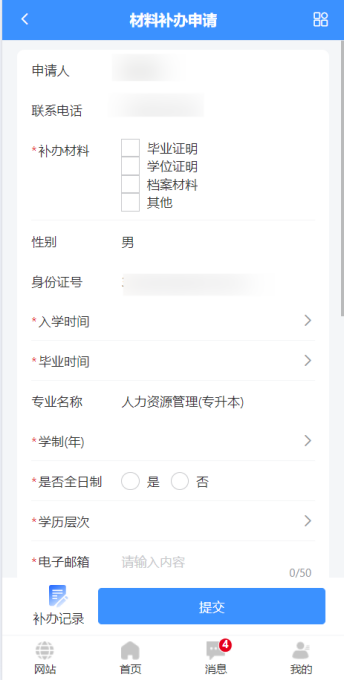 (2)填写个人信息,其中红色*号为必填项,确认无误后点击提交。