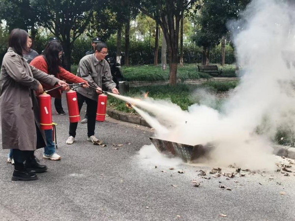 疏散完成后,灭火器使用教学环节成为此次演练的重头戏。在6号实验楼东门室外空地,保卫处人员拿起灭火器,详细讲解使用方法。使用灭火器时,要先提灭火器至距离火源适当位置,然后拔下保险销,一手握住喷管,对准火源根部,另一只手用力按压把手,进行灭火操作。讲解完毕,师生进行了精彩演练,灭火器喷射出的干粉精准地扑灭火焰,赢得师生们阵阵赞叹。他们表示,通过亲身体验,深刻理解了灭火器在火灾初期控制火势的重要性,也增强了应对火灾的信心。