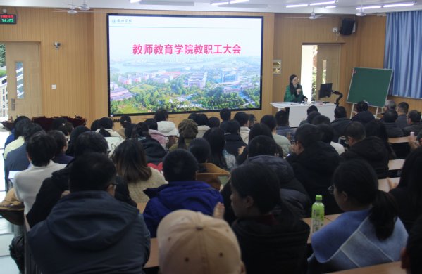 “教院祝贺您”环节,表彰了2024年度的“教院之星”,共有22位教师在教学、教研、科研和就业等方面脱颖而出。朱展、周绿萍、王后玉、徐裕敏、金小梅、赵盼盼等六位老师荣获2023-2024学年教院“教学之星”荣誉称号;雷小青、徐丽丽、王海文、王后玉、姜玉荣、徐莉莉等六位老师荣获2023-2024年度“教研之星”荣誉称号;吴锡标、赵言领、杜柏言、杨建辉、王建勇、彭磊等六位老师荣获2023-2024年度教院“科研之星”荣誉称号;徐菁、马丽梅、苏贤、徐宇晨等四位老师荣获2024年度“就业之星”荣誉称号。