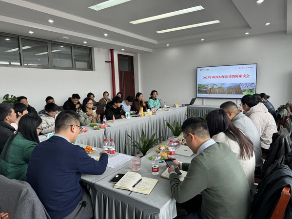 丰爱静对新入职教师提出三点希望:一是积极融入团队,主动参与学院各项活动,通过学术研讨、文化交流、工会联谊等增进情感,协作推动学院发展;二是做好职业规划,助力学科建设,妥善平衡教学与科研、工作与生活、事业与家庭之间的关系。三是注重师德师风,严守高校教师师德师风标准,站稳三尺讲台,不触师德红线,树立良好形象。
