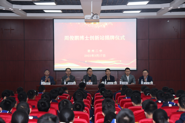 何忠新副书记、副局长在讲话中表示,周俊鹏博士创新站的成立,是我市深化教育改革,探索拔尖创新人才培养新路径的有益尝试。他表示,希望周俊鹏博士创新站立足高远,打造人才培养新高地。他要求周俊鹏博士创新站加强协同,深化与小学、初中、高校、科研院所的协同创新,促进形成拔尖创新人才培养体系。他还期待衢州二中以此为契机,深化教育教学改革,为我市教育改革发展探索新路径、积累新经验。