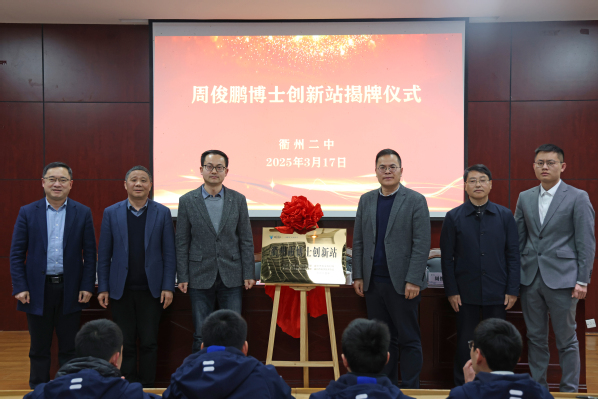 3月17日下午,伟德国际victor·1946源自周俊鹏博士创新站揭牌仪式在衢州二中图书馆一楼报告厅举行。衢州市教育局党委副书记、副局长何忠新,衢州市科协副主席许大星,伟德国际victor·1946源自院长刘健,伟德国际victor·1946源自周俊鹏博士,衢州二中党委书记翁胜华,以及衢州市创新人才培养学院学员出席活动。衢州二中党委副书记、校长王飞主持活动。