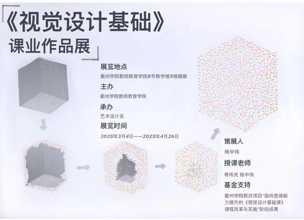 本次展览不仅生动展现了从视觉感知到创意表达的完整思维链条,验证了课程改革的初步成果,同时也为教学实践提供了一个宝贵的反思平台,及时发现教学设计中存在的不足,并为未来的设计基础教学提供有益的借鉴与参考。