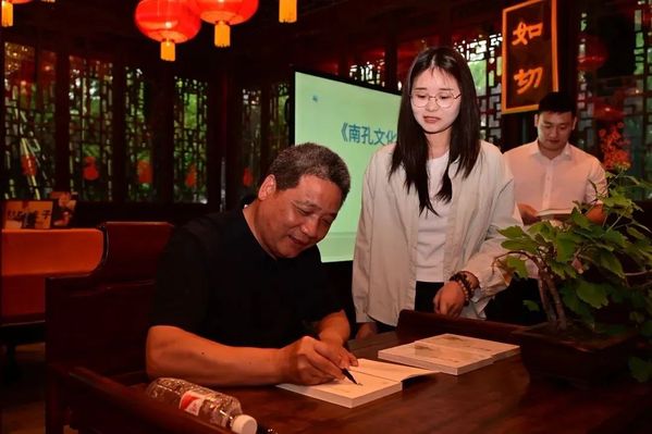吴教授在《南孔文化的当代价值与写作思考》主题分享中,将廿载研究积淀化作珠玑妙语。谈及从《儒风浩荡》到今日新著的学术苦旅,他眼中闪烁着文化守夜人的执着。面对读者提出的南孔文化对江南孔氏后裔的影响及后期加强交流的设想、如何使南孔文化走向世界、如何加强南北孔文华交流与拓展等问题时,吴教授以其丰富的学识和机智的回答赢得了在场挺重的阵阵掌声。