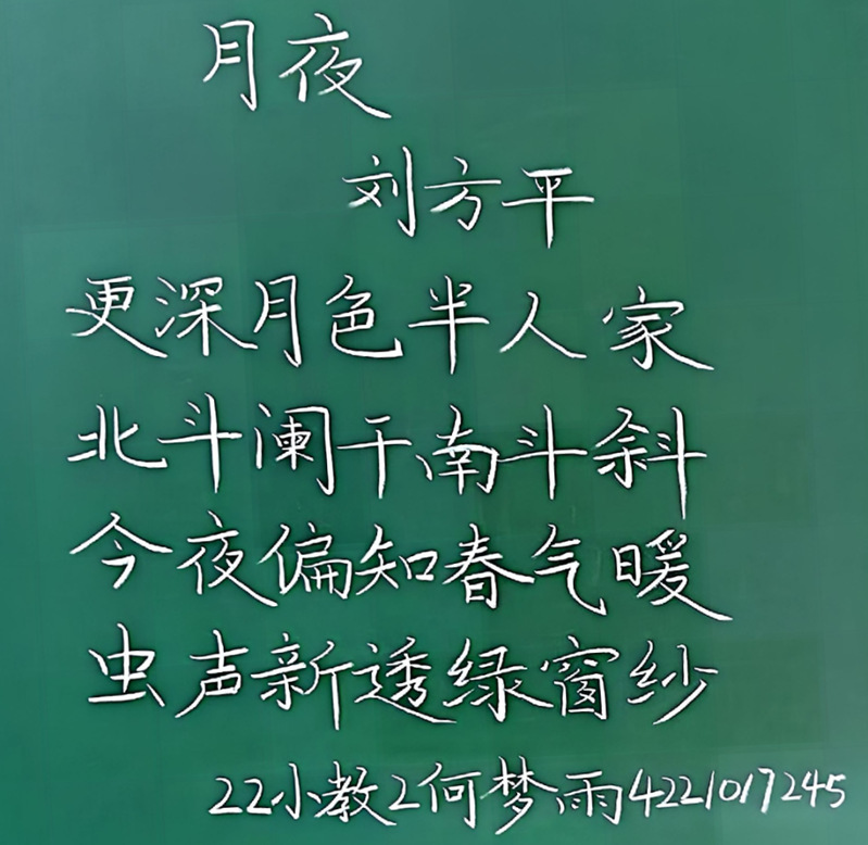 从毛笔的提按顿挫里窥见千年文脉的筋骨,于粉笔的沙沙声中打磨黑板方寸间的从容,再在硬笔字迹的横平竖直里,将师者的严谨与温度一一落定。这些笔尖下的修行,既是技艺的锤炼,更是心性的沉淀:一横一竖,撑起“师范”二字的端正;一撇一捺,勾勒育人之道的舒展。