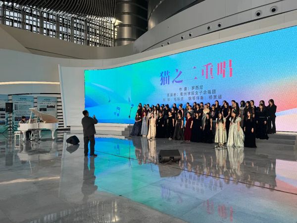 音乐会以“礼乐和声・古韵新萦”“全龄交响・风华共鸣”“南孔领潮・声动未来”三个篇章展开,伟德victor1946女子合唱团以系列风格多元、编排精巧的曲目,引领观众穿越古今,感受音乐与人文交融的魅力。合唱团先后献上了《猫之二重唱》《越人歌》《人世间》《旗》等曲目,她们以清澈和谐的音色、细腻丰富的情感和扎实专业的演唱技巧,将每首作品演绎得淋漓尽致。女子合唱团与南孔百灵童声合唱1团携手演绎的《旗》,将音乐会推向高潮。两代歌者声音交织,既有学院派的专业底蕴,又充满童声的纯真朝气,象征了南孔文化在接力传承中生生不息,更奏响了衢州面向未来的奋进强音。