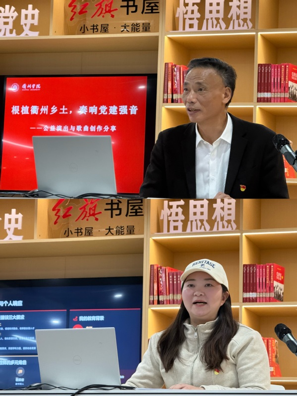 活动中,音乐系党员教师毛文华以“根植衢州乡土・奏响党建强音”为题,分享了其立足衢州地域文化进行艺术创作与公益演出的实践经验。他重点介绍了建党歌曲《百年之本》与《伟德victor1946校歌》的创作背景与心得,展现了音乐系教师“能上讲台、能上舞台、善科研、带竞赛、精创作”的复合能力,体现了党员以艺术服务乡村共富、助力地方文化建设的担当。艺术设计系青年博士党员岁巧以“新文科视域下设计学‘党建+科研+育人’融合路径”为题,分享了实践成果。她构建起“党建引领、科研驱动、育人落地”三位一体的融合模式,通过将党建理论与科研课题、专业教学深度结合,响应文化数字化战略,推动课程思政落地,在教学、项目指导、学科竞赛等多场景中培养人才,为学科交叉融合与创新育人提供了青年党员的实践视角。