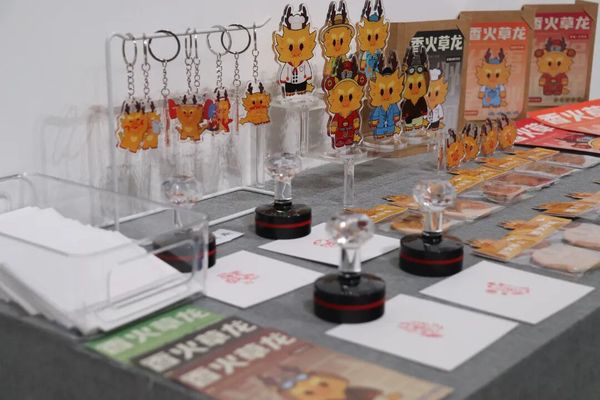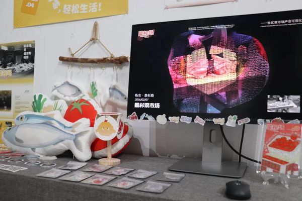 展厅中一组聚焦传统文化当代转译的系列作品,成为全场互动打卡的焦点。同学们以非遗特色、传统民俗、东方美学为核心灵感,将传统纹样、非遗技艺、文化典故,通过数字插画、动态影像、交互设计等多元形式完成创新表达。王怡心同学聚焦衢州本土非遗开化香火草龙,深度挖掘其背后的民俗底蕴与文化内核,完成了从核心视觉符号提炼、主题系列插画创作到全链路非遗文创设计的完整创作体系,将香火草龙的经典形态、民俗场景进行年轻化、当代化的视觉转译,让古老的非遗文化适配当下的多元传播与应用场景。毛立洪表示:“这并非技术层面的简单堆砌,而是需要学生们深入挖掘文化内核,提炼精神精髓,再用当代语境完成数字转译,让传统文化在数字时代焕发全新的生命力。